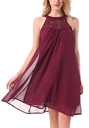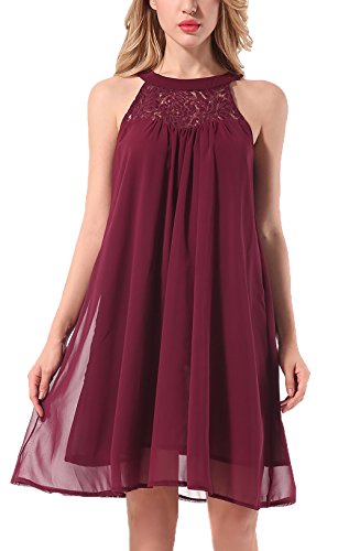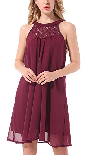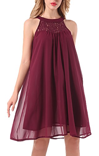 Features: Sleeveless, Halter Neck, Back Keyhole with buttons, Solid Color, Floral Lace, Swing Dress, Knee Length, Flowy Summer Halter Dress, Chiffon Mini Swing Dress