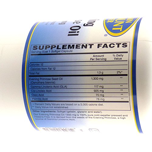 Studio : Vitamin Discount Center Publisher : Vitamin Discount Center Product Description Our evening Primrose Oil 1,300 mg is 100% pure cold expeller pressed and hexane free. It is derived from the seeds of the Evening Primrose, a high source of Gamma-Linolenic Acid. As a dietary supplement, adults take one (1) softgel, two (2) or three (3) times daily with meals, or as directed by a health care professional. Store in a cool, dry place and away from direct light. These statements have not been evaluated by the Food and Drug Administration. This product is not intended to diagnose, treat, cure, or prevent any disease. 0