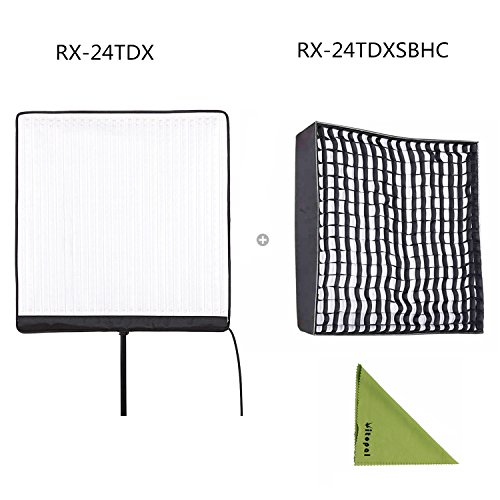 1×RX-24TDX roll-flex light 4×Adhesive Velcro(black) 2×Adhesive Velcro(white) 1×Adhesive Velcro (to mount lights) 1×X L Bracket 1×Circuit Control Box 1×Adaptor 1×Adaptor power line 1×RX-24TDXSBHC Honeycomb Grid Softbox 0