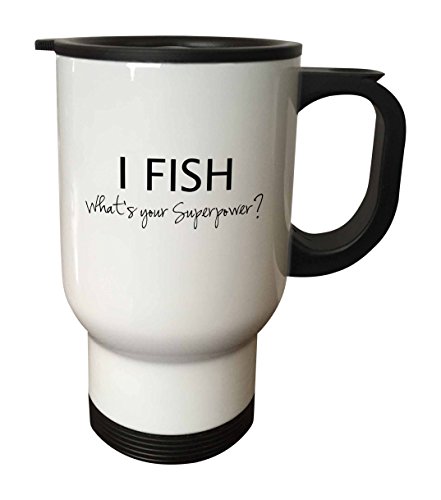 3dRose tm_184943_1 I Fish What's Your Superpower Funny Fishing Love Gift for Fisherman Travel Mug, 14 oz, White