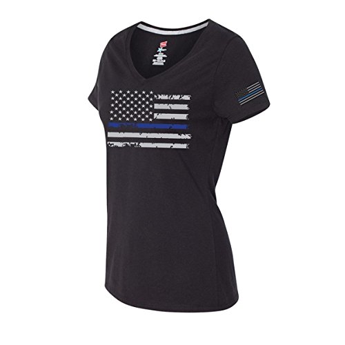 Binding : Apparel Product Description This is a Beautiful Distressed Thin Blue Line Flag Design on a Black Haines Nano V Neck T Shirt. This is a premium quality v neck the nano which is ultra soft and perfect for any Women Officer, Police Officer wife or Girlfriend. Enhanced with a thin blue line flag sleeve print for further detail. Description: - So light and soft, you'll fall in love with this V-neck tee in a Nano-second.