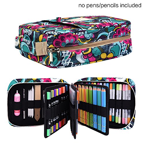 - LARGE PENCIL ORGANIZER - Top quality Pencil Case that has a multi-layer compartments and large capacity that can store up to 202 colored pencils or 136 gel pen markers. The cover is made of the best polyester Oxford fabric on the market that will never rip apart, wear out or let you down.