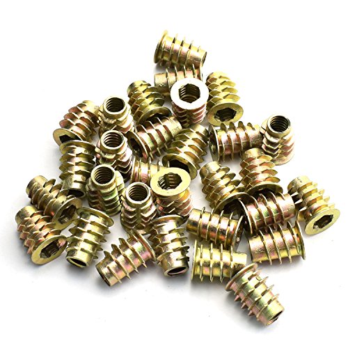 LQ Industrial 30pcs 15mm Furniture Screw-in Nut Zinc Alloy Bolt Fastener Connector Hex Socket Drive Threaded Insert Nuts For Wood Furniture Assortment 1/4"-20