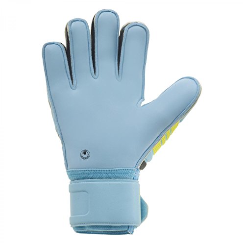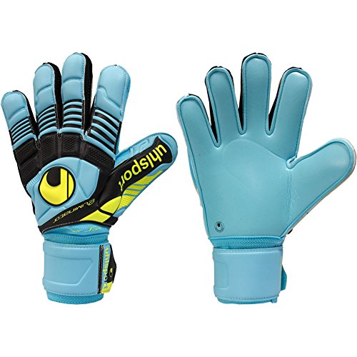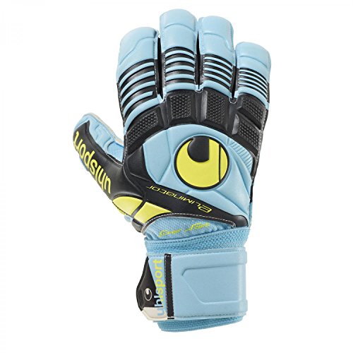 Studio : Uhlsport Publisher : Uhlsport Binding : Misc. Product Description PALM: Exclusive SUPERSOFT.BACKHAND: 3D-embossed latex.CUT: Classic cut provides a maximised catching area.GLOVE BODY: Breathable textile for good ventilation.FASTENING: Wrap around latex strap and full bandage for good wrist fixation.DESIGN: Unique Eliminator-design. Ergonomically preshaped cut for best wearing characteristics. 3D-embossed SCHOCKZONE-element for optimised punching performance and cushioning. 0