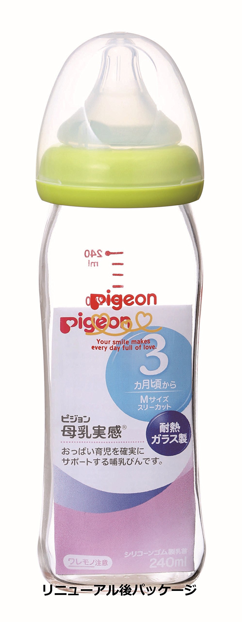 Pigeon breast milk realize bottles heat-resistant glass light green 240ml