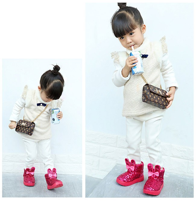 キラキラスパンコール可愛いウサギ付いた裏起毛ブーツ!