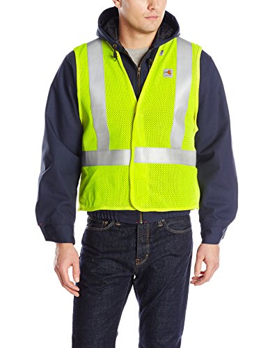 Studio : Carhartt Sportswear - Mens Publisher : Carhartt Sportswear - Mens Binding : Apparel Product Description Working near moving equipment in a job that requires FR? Carhartt's flame-resistant high-visibility 5-point breakaway vest combines two protective technologies to help get the job done. Constructed in 6.5 ounce FR mesh fabric that blends 85% mod acrylic and 15% Kevlar, the vest features 3M Scotch lite FR reflective material #8935. There are five breakaway points: one FR hook-and-loop closure on the front, two on the sides and two on the shoulders. 6.5 ounce FR mesh fabric: 85% mod acrylic/15% Kevlar Meets NFPA 70E standards Meets ANSI Class 2, Level 2 visibility standards 0