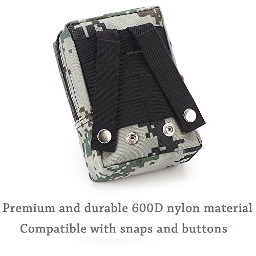 High Quality Druable Bag (6.7" x 4.9" x 3.9", weighs only 1.3 pounds): Made of premium and durable 600D nylon material , durable MOLLE straps with strong snaps allows you to attach this medical pouch to any MOLLE compatible gear (to be worn on belt, vest or pack)