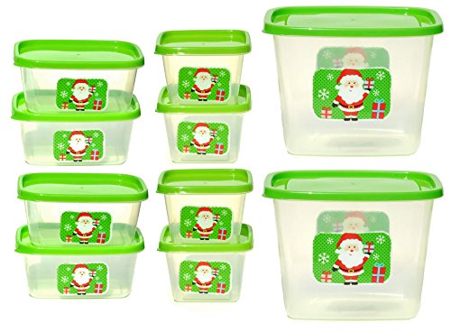10 Piece GREEN SANTA Bulk Santa Holiday Christmas Cookie Exchange Treat Food Storage Container Set (Green)