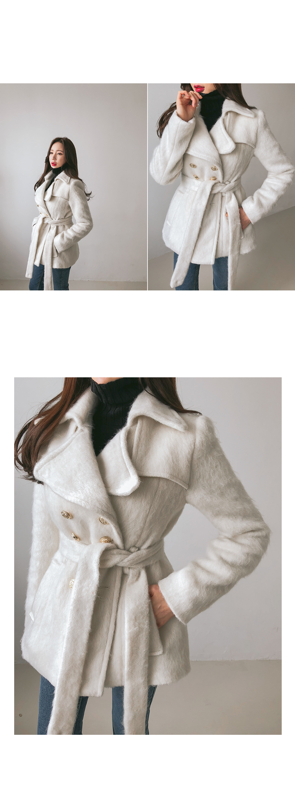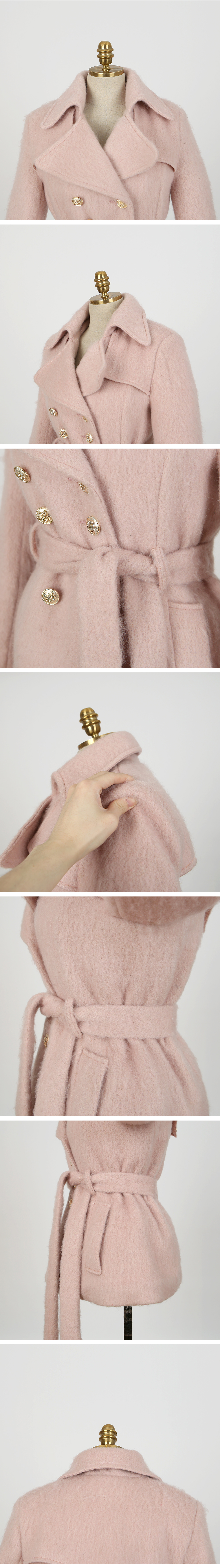 사랑스러운 룩을 완성해주는 하프코트를 소개해드릴게요 울이 40%나 함유되어 있는 원단으로 제작되어 굉장히 따뜻하구요 부드러운 원단감과 클래식한 디자인으로 오랫동안 입기 좋아요 골드버튼 디테일이 룩에 포인트가 되어주고 하프기장에 허리라인을 강조할 수 있는 벨트가 있어 날씬해보인답니다. 기존 하프코트보다 살짝 위로 벨트고리를 달아서 다리가 길어보이는 효과가 있구요 여성스러운 핑크와 아이보리컬러는 봄까지도 충분히 입기좋은 화사함이고, 블랙컬러는 기본으로 있으면 유행에 구애없이 두고두고 입을 디자인이에요 슬랙스나 머메이드스커트같은 바텀에 오피스룩에도 제격이고, 데님이나 롱원피스에 코디해서 페미닌한 룩으로 코디해도 좋답니다. 사이즈는 FREE로 44반사이즈의 모델에게 예쁘게 잘맞았구요. 44사이즈분들부터 66사이즈분들까지 추천드리는 핏감이에요 다만, 두꺼운이너와 함께하시면 체형에 따라 핏감이 달라질 수 있으니 하단에있는 상세사이즈표 참고해서 주문해주시면 좋을 것 같아요 클래식한 하프코트와 함께 올겨울 따뜻하게 보내세요~