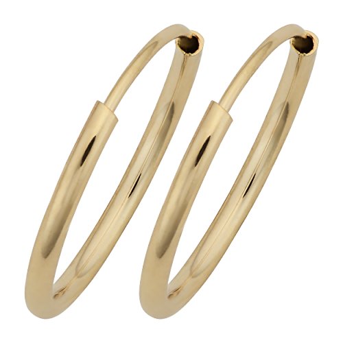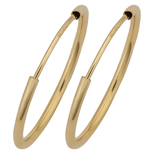 -. Feature : Crafted of 14 karat yellow gold / Features an endless hoop style / This pair of gold hoop earrings is ideal for babies, girls, teens, and adults / These yellow gold hoop earrings are lightweight and delicate