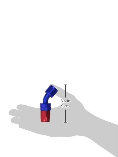 - Size of the 45 degree hose end and the adapter is -8 AN with the female thread attachment