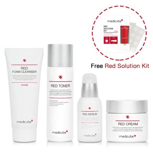 -. Feature : Medicube Red Toner, Red Serum, Red Cream, Red Foam Cleanser and Red Solution Kit / Korean derma brand Medicube's best-selling skin care line / Trouble calming, whitening, wrinkle-improving triple functional cosmetics / Best solutions for sensitive and trouble-prone skin / Clinically tested for sensitive skin and irritation-free