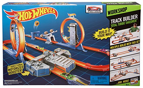 -. Binding : Toy -. Brand : Hot Wheels -. EAN : 0885767929326 -. Feature : Part of the Hot Wheels Track Builder system / Combines with existing track sets that let kids design, create and customize their own race and stunt challenges / Comes with a two-way booster for multiple ways to play / Includes car-activated and action-oriented stunts and 2 quick kick loops / If you can dream it, you can build it with Track Builder! -. IsAdultProduct : 0 -. Label : Mattel - Import (Wire Transfer) -. Manufacturer : Mattel - Import (Wire Transfer) -. Model : BGX89 -. MPN : BGX89 -. PackageQuantity : 1 -. PartNumber : BGX89 -. ProductGroup : Toy -. ProductTypeName : TOYS_AND_GAMES -. Publisher : Mattel - Import (Wire Transfer) -. ReleaseDate : 2014-06-01 -. Studio : Mattel - Import (Wire Transfer) -. Title : Hot Wheels Track Builder Total Turbo Takeover Track Set -. UPC : 885124556561 -. Warranty : No Warranty