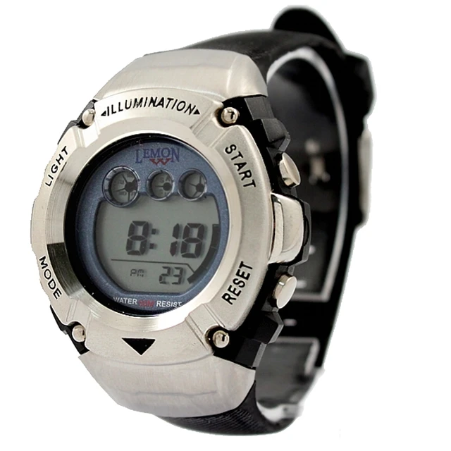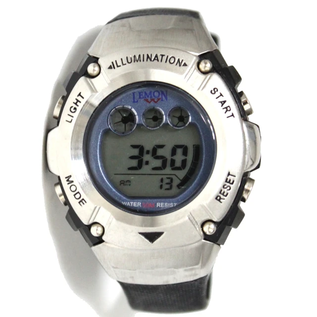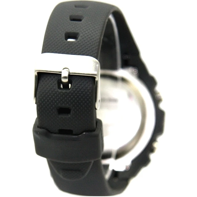 상품 내용 운동: 디지털 모듈: 배터리 시계 케이스 재질: 수지 스테인레스 및 도금 금속 시계 케이스 또는 마무리: PNP 빛나는 실버 색상 베젤 시계 케이스: 블루 베젤 시계 케이스 폭: 40 미리메터 시계 케이스 높이: 51 미리메터 시계 밴드 재질: 플라스틱 시계 밴드 또는 마무리: 블랙 시계 밴드 폭: 20 미리메터 시계 밴드 조절: 135 미리메터 198 미리메터 다이얼 색상: 다크 그레이 운전 소스: 버튼 배터리 방수: 예 알람: 예 날짜 표시: 예 크로노 그래프 (스톱워치): 예 다시: 예
