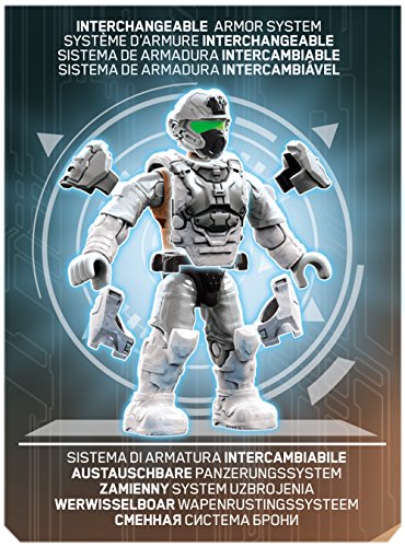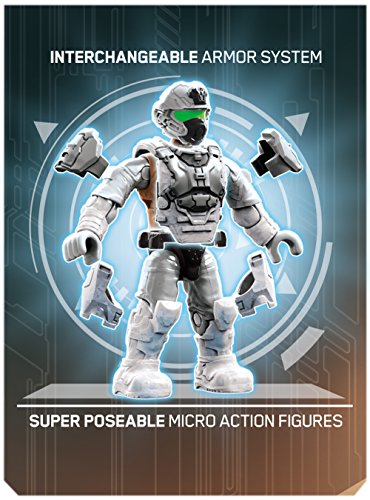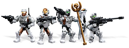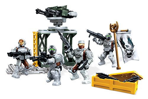 -. Feature : Four super-poseable UNSC Marine Corps micro action figures with interchangeable armor system, including three UNSC Marines and one Marine Officer / Detailed weapons and accessories include a Tactical Shotgun, M6C Socom, Assault r.i.f.l.e, SAW, Rocket Launcher, Sniper r.i.f.l.e, Grenade Launcher, Comm Backpack, and three Backpacks / Build environment with anti-aircraft dual machine gun turret, UNSC flag, and weapons crate / Collect and combine with other Mega Bloks Halo sets / Build your own authentic Halo universe!