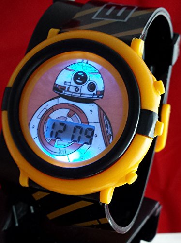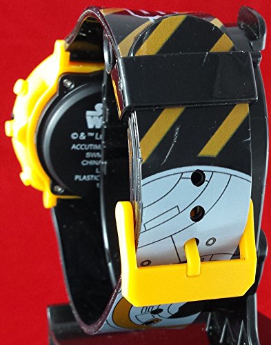 -. Binding : Watch -. Brand : Disney -. Color : Black -. Department : Unisex-child -. EAN : 0030506418405 -. Feature : BB8 Large logo on face perfect for any Star Wars fan / Lights Up in blue with the press of a button / BB8 Graphics running through the entire band / Clear and easy digital time perfect for any young child / Band adjusts perfectly to your child's wrist with multiple holes and a buckle clasp -. Label : Accutime -. Manufacturer : Accutime -. Model : 00-LYBV33-FR -. MPN : SWM3005 -. PackageQuantity : 1 -. PartNumber : SWM3005 -. ProductGroup : Watch -. ProductTypeName : WATCH -. Publisher : Accutime -. Studio : Accutime -. Title : Star Wars Kid's BB8 Digital Light Up Watch SWM3005 -. UPC : 030506418405