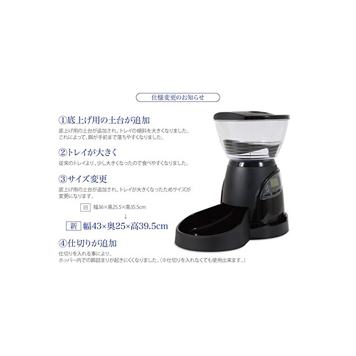 향상(인상)용의 토대가 추가되고, 트레이의 경사가 커졌습니다.이것에 의해 먹이가 수전 까지 빠짐 쉬워졌습니다.