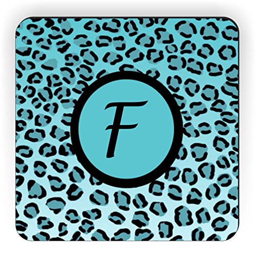 Rikki Knight Letter "F" Initial Sky Blue Leopard Print Monogrammed Design Square Fridge Magnet