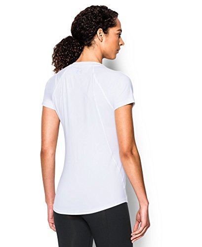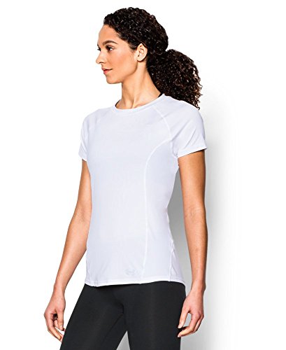 UA CoolSwitch uses an exclusive coating on the inside that pulls heat away from your skin, making you actually feel cool & able to perform longer. Signature Moisture Transport System wicks sweat to keep you dry & light. UPF 30+ sun protection. Raglan sleeves unlock mobility for serious range of motion. Princess seams create a slimmer, more streamlined silhouette. Classic crew neck collar. Polyester/Elastane. Imported.Feature