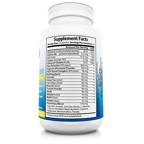 -. Feature : Reduces Prostate Problems! Supports Proper Prostate Function. / Fights Hair Loss in Men! Fights Undesirable Hair Growth for Women! Retains Testosterone Balance by Curbing DHT. / Helps Maintain Proper Urine Flow! Strengthens Urinary Organs (in Males and Women after Menopause) / Contains Zinc and Pumpkin Seed. Increases Immunity, Helps Muscle Growth and Repair, and Helps Maintain Heart and Liver Health. / MADE IN USA! We are proud to be able to say our product is made by American hands. Produced in an FDA certified facility, regularly inspected by a third party tester, that follows stringent GMP guidelines ensuring every product contains the highest quality ingredients and meets stringent standards and procedures to achieve safety, potency, and purity in our products and practices. 100% SATISFACTION GUARANTEED. If you're not satisfied we will make it right!