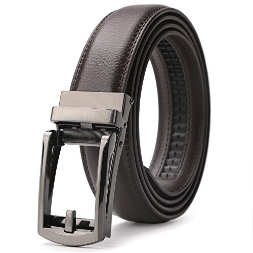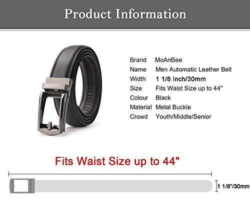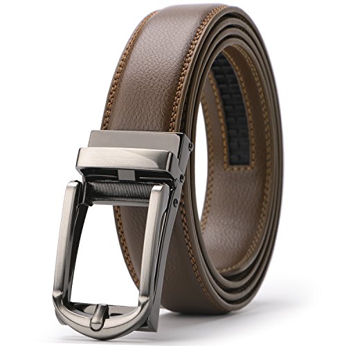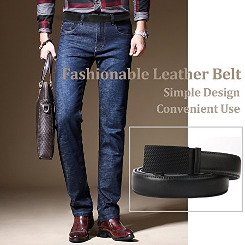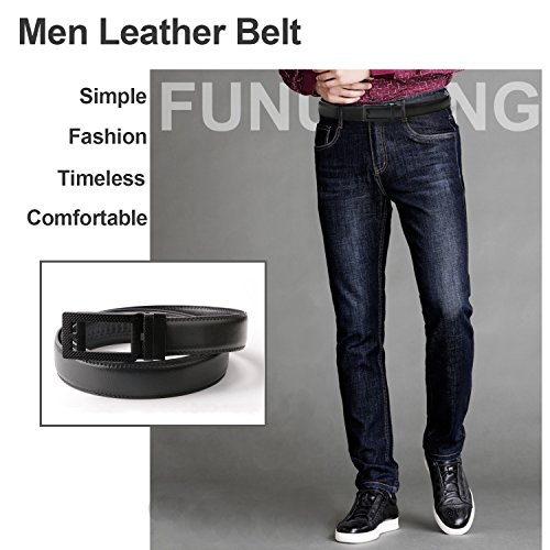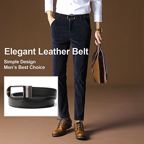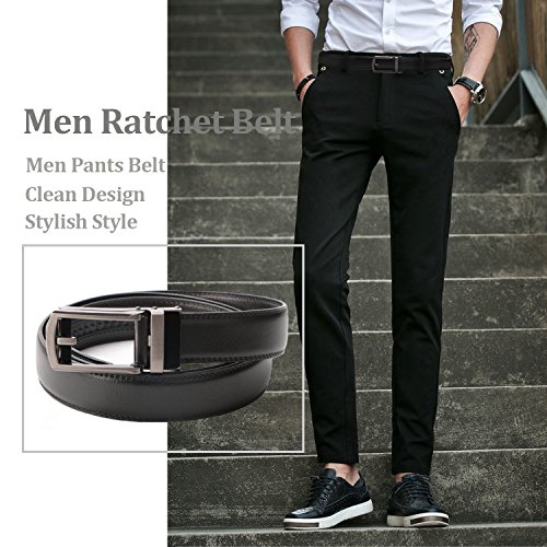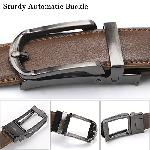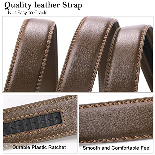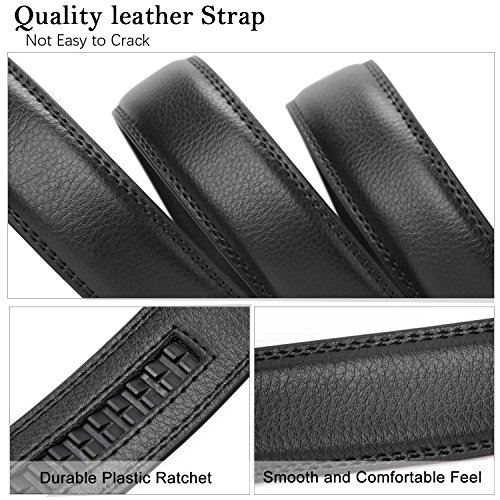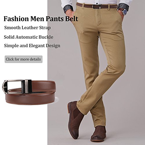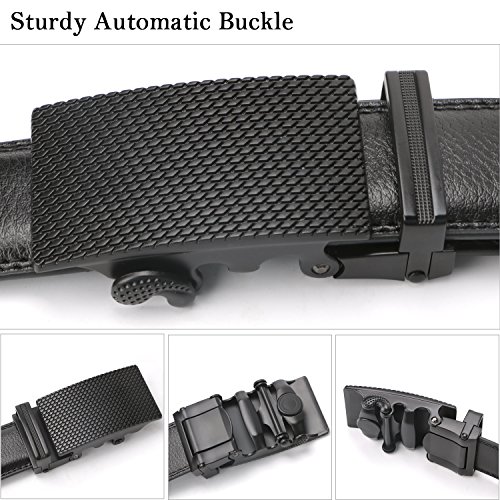 √ Advanced Material: We choose high quality leather and metal buckle?for durability. This 30mm wide leather belt made of Smooth and Comfortable Leather Strap and Automatic Metal Buckle. The ratchet belt is not easy to crack. And our buckle has high resistance to rust, corrosion and tarnishing, which will be shiny as a new one even years later.