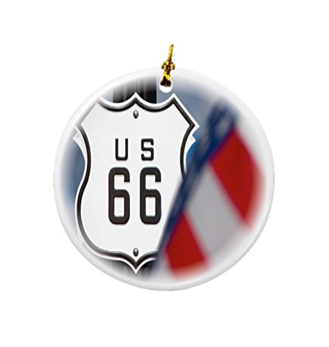 Rikki Knight Route 66 Design Round Porcelain Two-Sided Christmas Ornaments