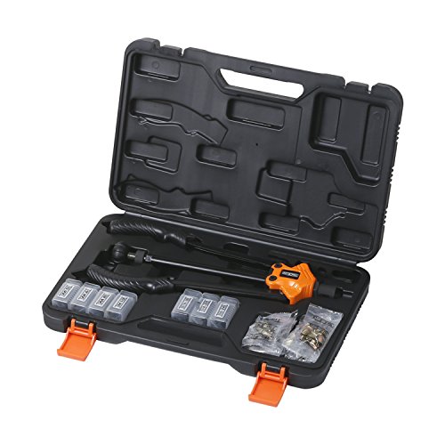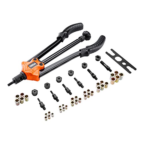 Tacklife HHNP1A Professional Hand Riveter Rivet Gun Kit, Long Handle Threaded Insert Tool with 7 Interchangeable Mandrels and 35 Pcs Rivets Nuts, 14 Inch