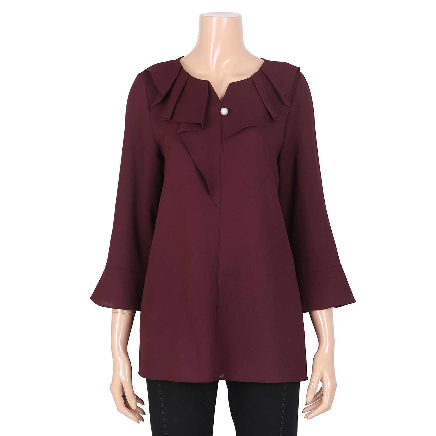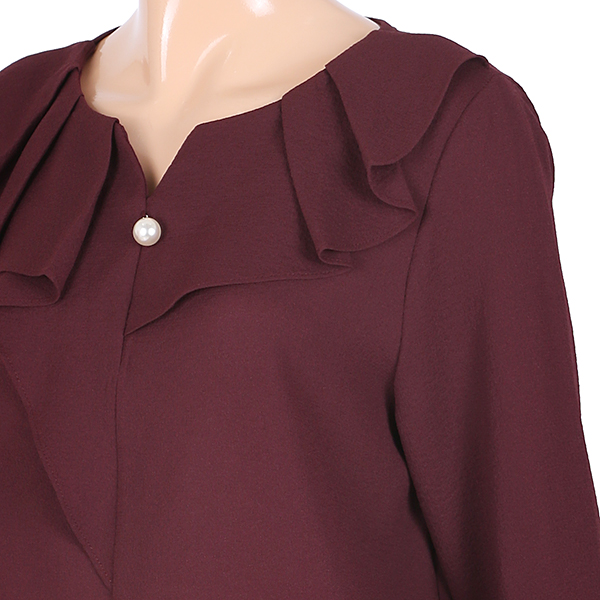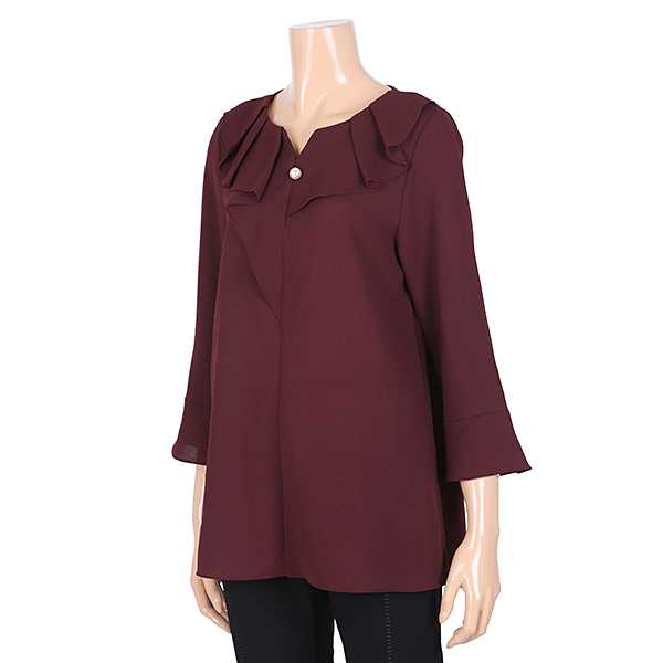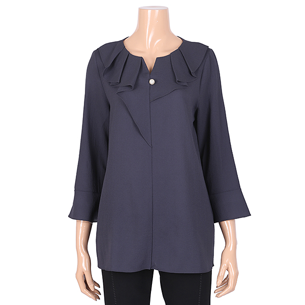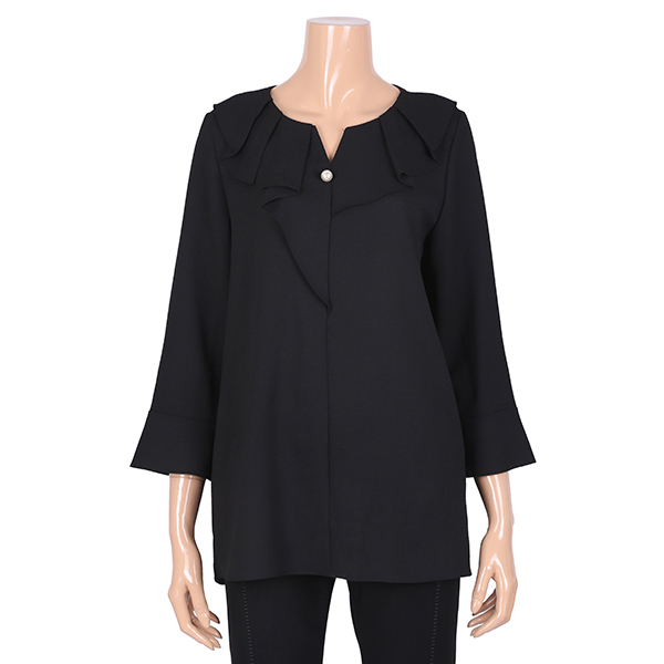 네크라인과 소매프릴이 여성스러운 세미블라우스입니다