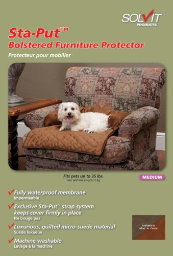-. Feature : Generously-filled bolster on three sides provides exceptional comfort for pets and protects furniture seat back and arms / Plush, quilted, main section extends forward to protect front edge of cushion / Durable yet luxurious micro-suede fabric with stain-resistant treatment; machine washable / Fully-waterproof membrane built into the main panel / Unique, Sta-Put(TM) devices tuck under furniture cushions to keep protector firmly in place / Unique, Sta-Put devices tuck under furniture cushions to keep protector firmly in place