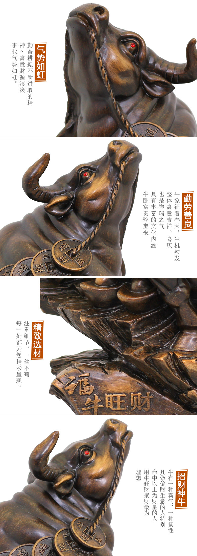 牛,即“牛气”的意思,是旺财之灵兽。经商做生意人大都在屋内摆放有旺财化煞祈福如意的作用。