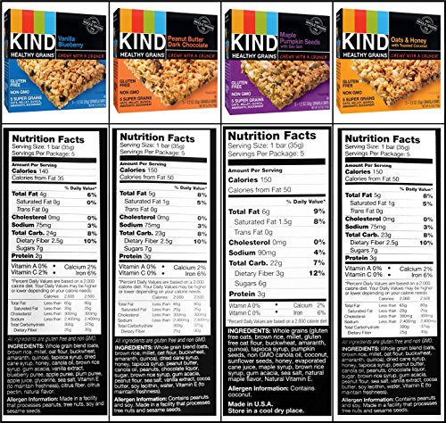 - Kind Healthy grains clusters are delicious blends of wholesome ingredients including five super grains, 10 grams of protein, low sodium, 0 gram of trans fat, non-GMO, gluten free; making them the perfect snack for your active lifestyle. You might enjoy them on-the go, over yogurt or simply with milk.