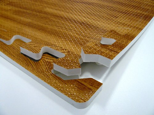 - Feature : This item comes with 48 square feet of flooring or (12) 2'x2'x3/8" thick tiles plus borders / Tiles come with a soft wood grain laminate surface / Provides a cushion to hard floor surfaces / Each tile is lightweight, durable and water resistant / Made from non-toxic EVA foam