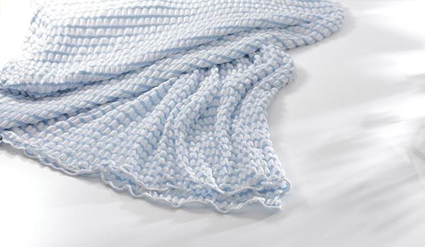 職人技が光る凸凹特殊ニットの風通しとひんやり感が新しいクールケットです。蒸し暑い夏にピッタリのサラッと爽やかでやわらかい感触なので、寝苦しい夜のお助けアイテムです。家庭洗濯機で丸洗いできるのでお手入れも簡単で衛生的! |