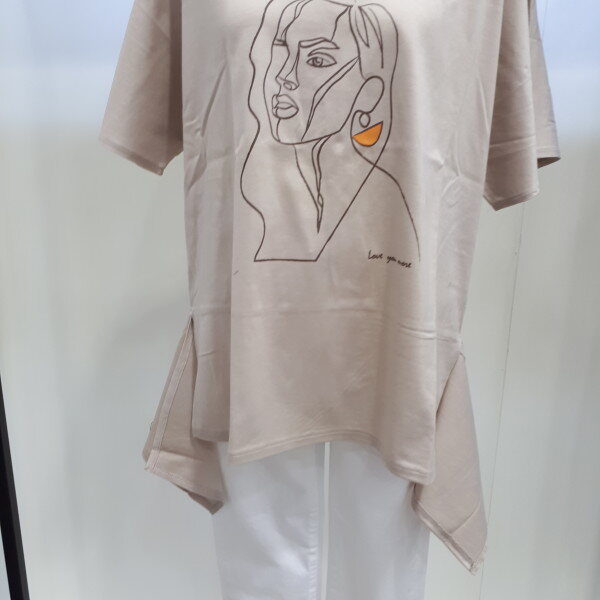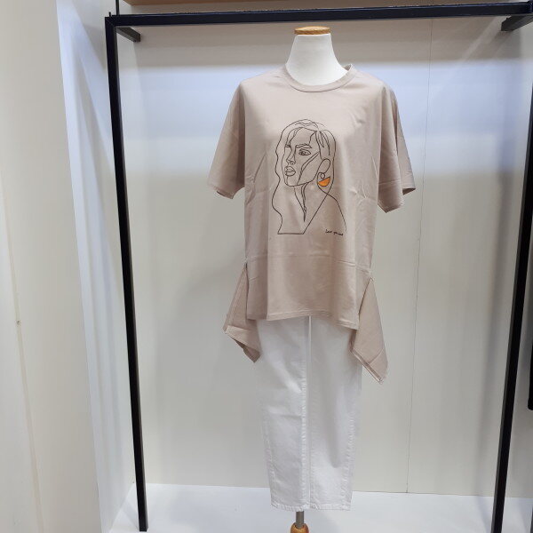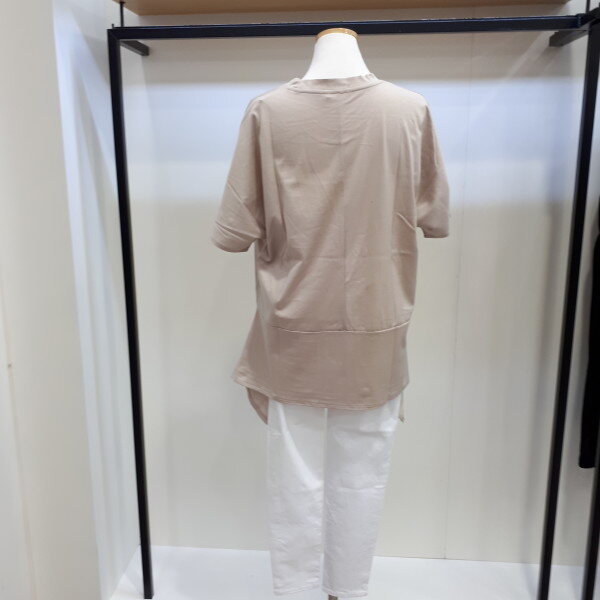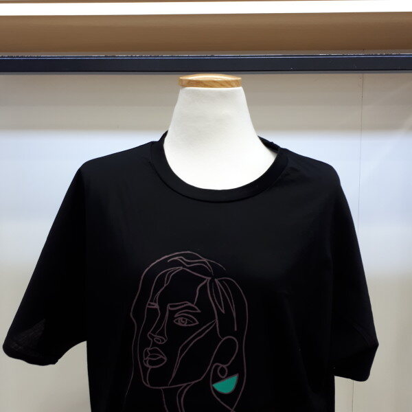 면100%의 기본라운드티셔츠입니다귀걸이모양의 예쁜무늬와 옆단이 멋스럽게 어울려져 한층 세련미를느낄수있답니다