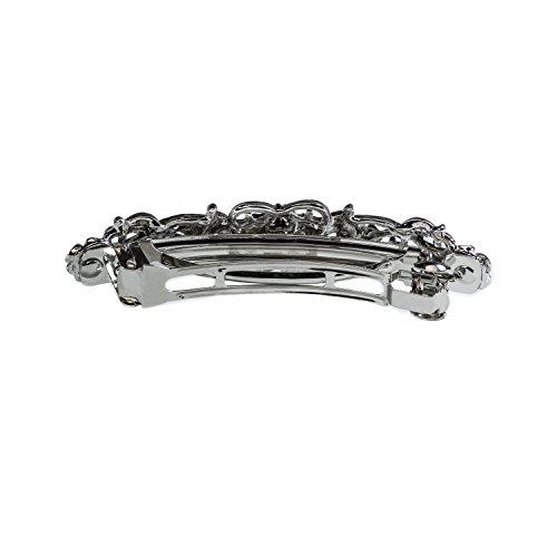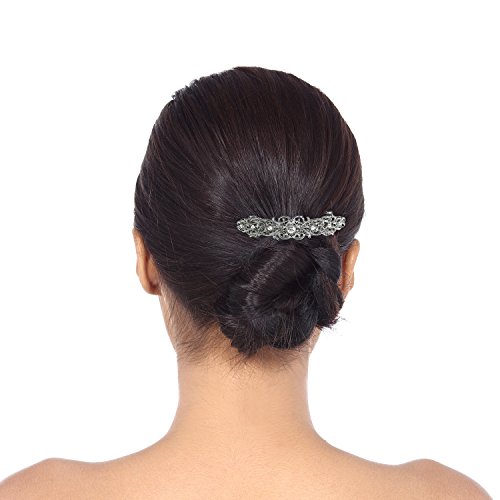 Product Description This silver and crystal hair barrette is perfect for attending all your formal events. The glamorous sparkle of each stone will surely add an exquisite to your attire. One of a kind hair accessory is versatile and makes a great gift as well. 0