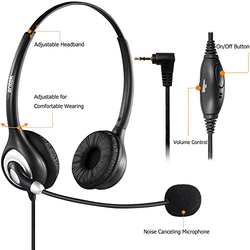 Arama Telephone Headset with Microphone Wired Phone Headset for Panasonic Cordless Phones with 2.5mm Jack Plus Many Other DECT Phones Polycom Grandstream Cisco Linksys SPA Zultys Gigaset IP