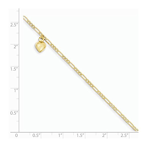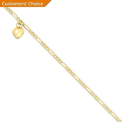 ICECARATS DESIGNER JEWELRY 14K YELLOW GOLD FIGARO LINK DANGLING HEART ANKLET FOR WOMEN ANKLE BEACH CHAIN BRACELET