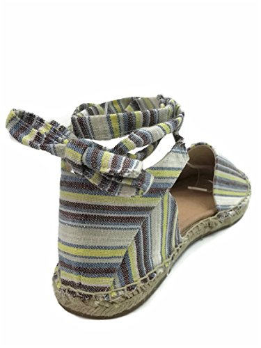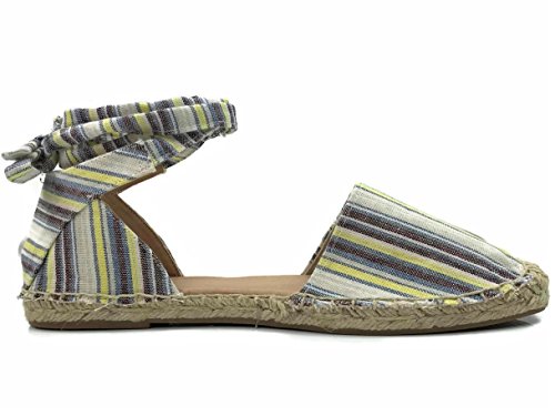 Product DescriptionWomen's open side espadrille flat shoe with feminine ankle wrap tie. Canvas upper with jute wrapped sole. Closed toe and breathable.0