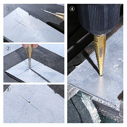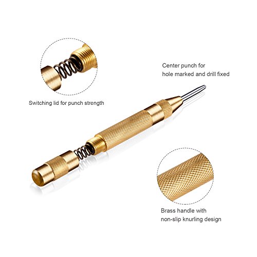 ▲AUTOMATIC CENTER PUNCH & PROTECTIVE ALUMINUM CASE - the center punch delivers an automatic, high-impact, spring-loaded strike through adjusting the cap; its brass body has a deeply knurled surface for nonslip control; and protective aluminum case to make the drills not easy to dull