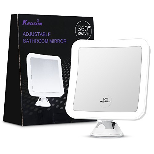 KEDSUM 10X Magnifying LED Lighted Makeup Mirror, 6.3" Wide Travel Mirror with Lights and Strong Suction Cup, 360 Rotation, Compact, Cordless, Battery...