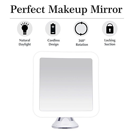 - ★Cordless, portable, square design travel mirror, operated with 3 AA Batteries (not included), when folded, takes up less than 1/2 square foot of space, which makes it a perfect travel mirror too. (Only 10.6oz without batteries)