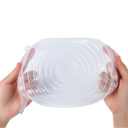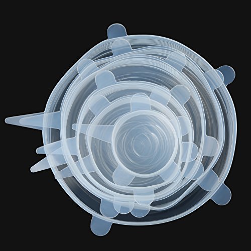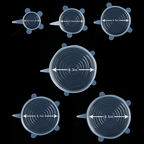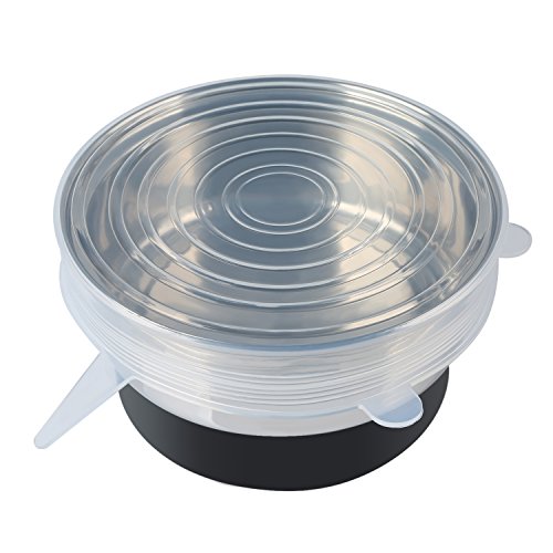 Pack of 6 Silicone Stretch Lids,CMaster Set of 6 Reusable Eco-Friendly Silicone Food Saver Covers Seal Bowl Covers for Dishwasher, Microwave, Oven and Freezer Safe