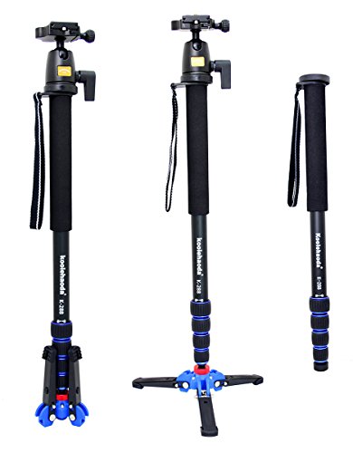 koolehaoda Camera Aluminum Monopod With Three Feet Stand Support Base & K-09 Ballhead For DSLR Camera Canon Nikon. Extended Max Height: 69-inch.