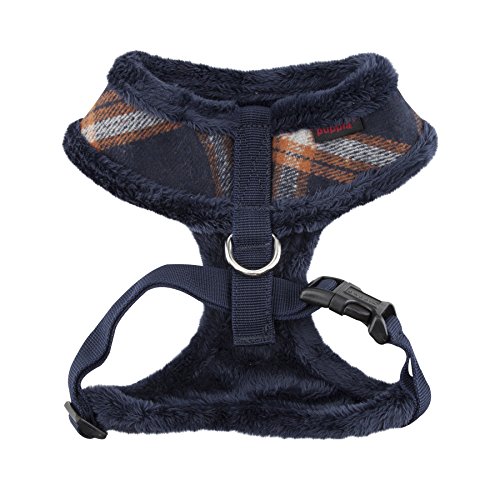 Studio : Puppetronics Publisher : Puppetronics Binding : Misc. Product Description The Kemp Harness A (over-the-head)features a checkered pattern and solid schemed. It is a warm and fuzzy winter harness featuring an adjustable chest belt and Puppia rubber label on the chest. Matching leashes are available and sold separately. Available in Beige, , and Navy in sizes ranging from Small to Extra Large. Please note that because these products were created with small breeds in mind, larger sizes (i.e. Large, Extra-Large, etc.) do not necessarily mean larger breeds. Please refer to image of the size chart. It is very important to measure your dog with a tape measure according to the size chart. As a general rule of thumb, if your dog falls in between sizes, it is usually better to go up a size. Weight figures are for estimates only. Always use actual measurements. Please note that when measuring your dog for clothing, it's very important to have an accurate measurement of your dog's neck and chest girth. IMPORTANT: Please note that when measuring your dog, the measurement for the neck must be taken at the BASE OF THE NECK and chest girth must be taken behind the front legs. Also it is important to take into account the size of the dog's head as well as neck girth and chest girth. Since some dogs have a much larger head than their neck, please be sure that the neck opening is large enough to slide over your dog's head. 0
