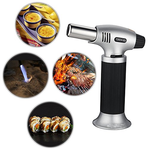Safety & Durable Cooking Torch - Security lock design prevents against accidental ignition and a wide base helps to prevent the culinary butane torch from tipping, made with Aluminum alloy body for long lasting use. Keep out of reach of children