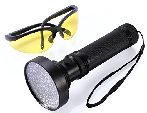 Bonve Pet UV Black Flashlight, 100 LED Pet Urine Detector with UV Sunglasses Professional Detector for Dogs Pets Urine Carpet Stains, Scorpions, Bed Bugs