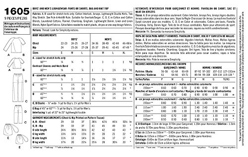 Simplicity Creative Patterns 1605 Boys' and Men's Loungewear, A (Small-Large/Small-X-Large)