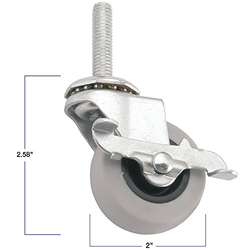 TPR Rubber Caster Wheel with Threaded Stem Attachment w/ Brake - 2-Inch - 80 lb. Load Capacity - Non-Marking for Hospitals, Food Service, & Other Institutional Applications