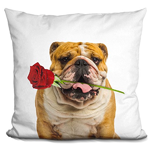 LiLiPi English Bulldog Rose Square Decorative Accent Throw Pillow